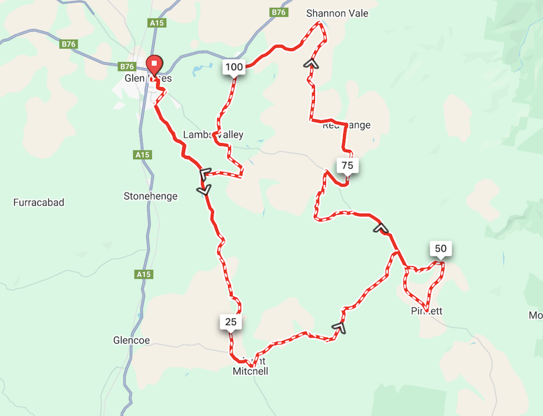@ ~29km turn RIGHT and follow the tarmac back towards Glen Innes and re-join the 75km and 125km course at ~35km as you head back to Glen Innes Showground.