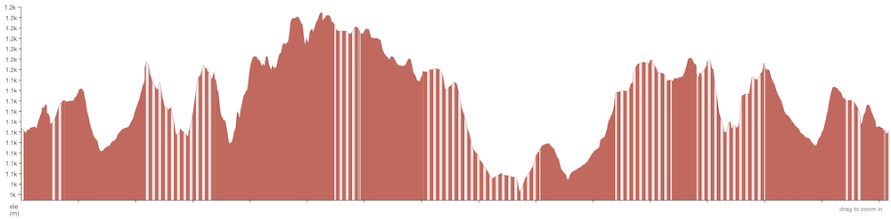 After this loop there is a solid paved climb going back along Pinkett Rd. At ~61km you are at the lowest point of the day (1,047m ASL) and from there it's time to go up.
